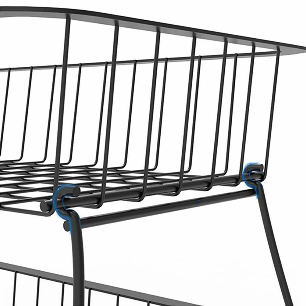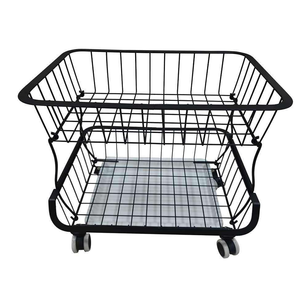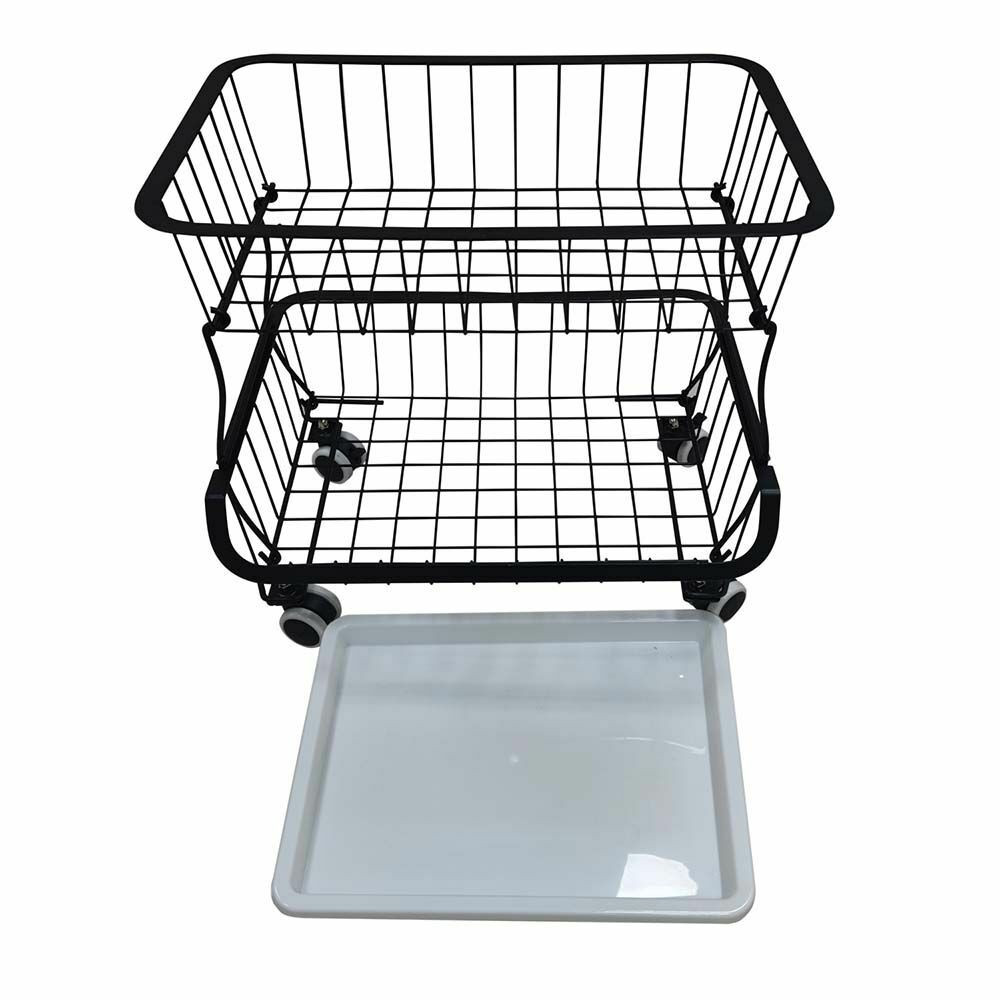 A kétszintes konyhai tároló nagy segítséget nyújthat a konyhában. Edények, tisztítószerek, főzéshez szükséges kellékek tárolására tökéletesen alkalmas. Két darab azonos méretű kosár áll rendelkezésedre, plusz egy alsó tálca amely kivehető, ezért könnyedén hordozható és letisztítható. A tárolónak a fix talpak mellett 4 darab felszerelhető kereke is van, így nagyon egyszerűen változtathatjuk helyzetét, és igény esetén a kerekeken található fékekkel kibiztosítva állíthatjuk helyére.