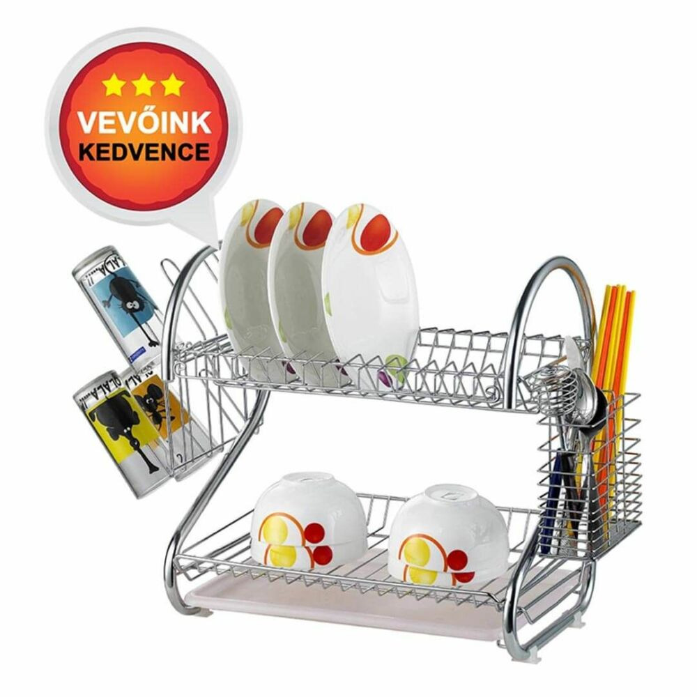 Egy háztartásban a mosogatás napi tennivaló. Minden háziasszony megküzdött már a tornyosuló edény és tányérkupacokkal. Egy praktikus edényszárító nagy segítség lehet, a konyhai eszközök gyorsabban száradnak és a lecsepegő víz sem folyik szét a konyhapulton. Könnyen és gyorsan megszárad a rá helyezett evőeszköz, tányér vagy pohár, a vizet pedig egy tálcába gyűjti. Négy részes: a fenti rész tányérok számára, az alsó rész nagyobb edények, üveg poharak számára, a két kisebb oldalsó rész pedig evőeszközök és fedők vagy csészék szárítására alkalmas.