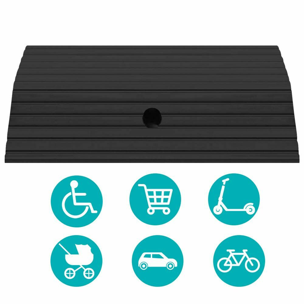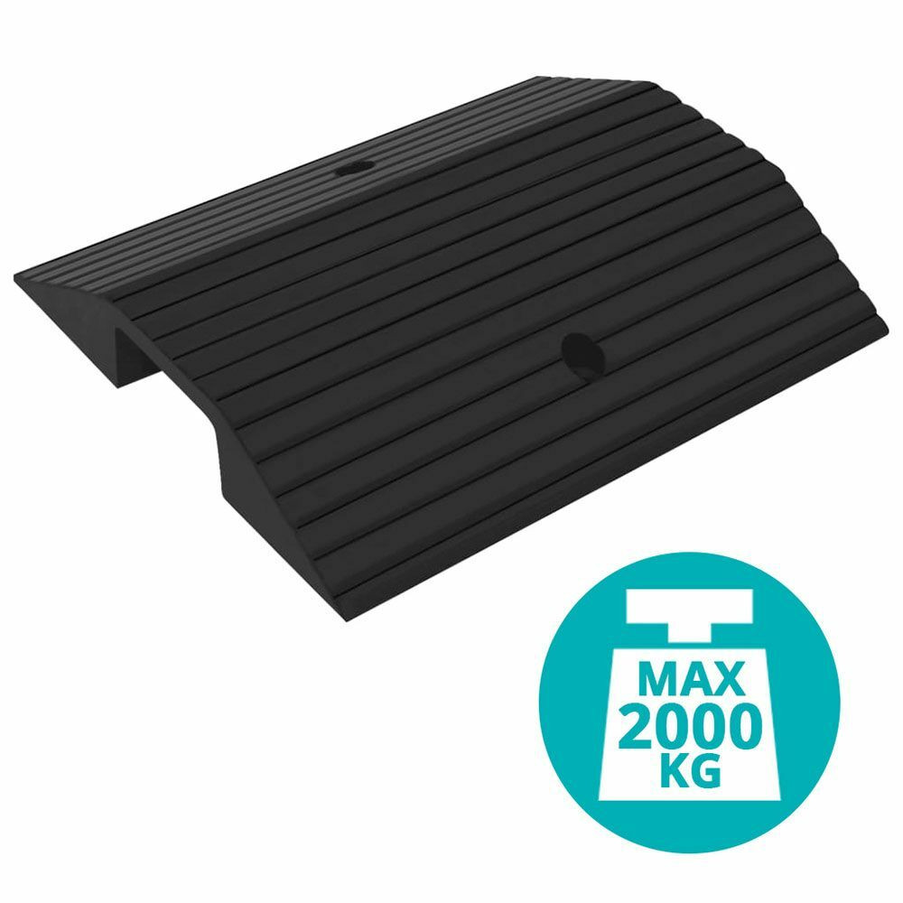 Küszöbrámpánk kifejezetten vezetékek, kábelek és kiálló szegélyek takarására és védelmére lett tervezve. Sokoldalúan használható, alkalmas kábelek elfedésére és védelmére, autók és egyéb járművek haladásának megkönnyítésére illetve akadálymentesítésre. Csúszásmentes gumi anyagból készült, két csavarral stabilan rögzíthető bármilyen stabil felületre. Ha a rámpát a talajhoz szeretnéd rögzíteni, a csomagban található két csavarral megteheted. Ebben az esetben elsődlegesen fúrj két lyukat a talajba, ügyelve arra, hogy a lyukak közti távolság megegyezzen a küszöbrámpán található lyukak távolságával. A termék teherbírása maximum 2 tonna.