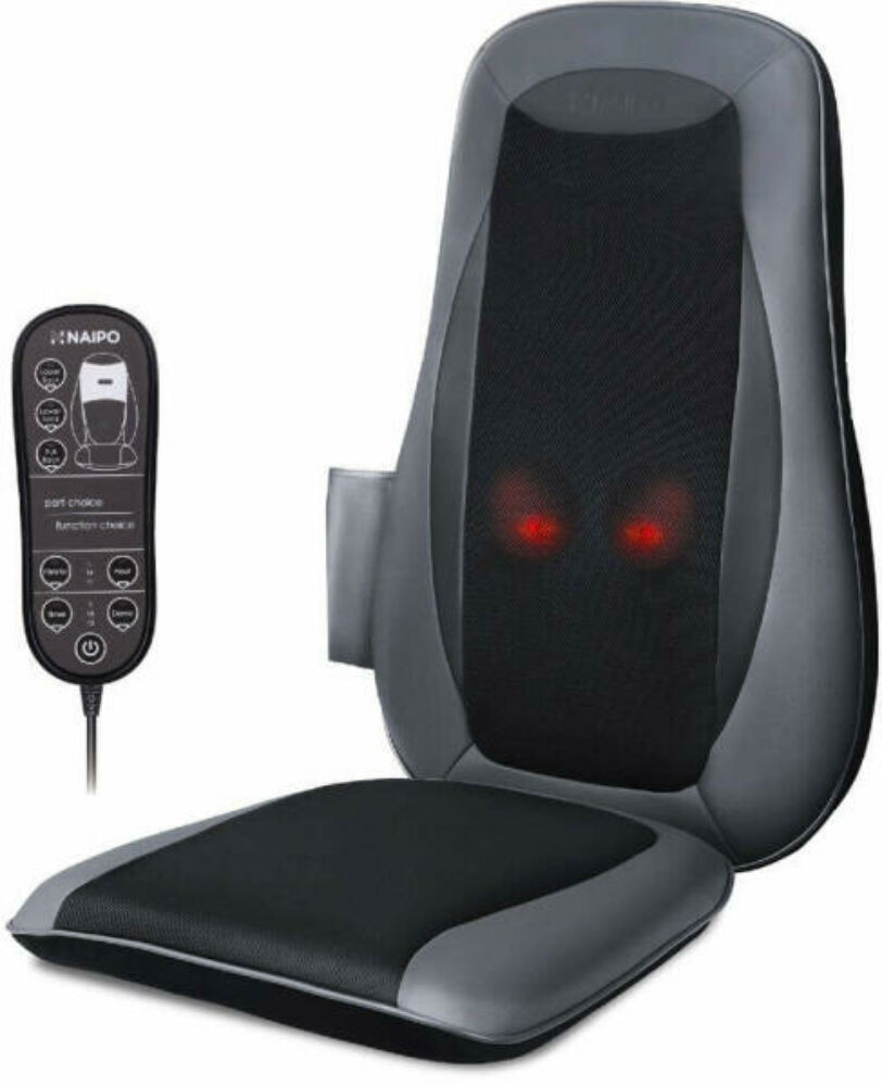 A Naipo Shiatsu teljes hát masszírozó készülék két pár forgó masszírozó gömbbel rendelkezik, melyek a shiatsu masszázs nyomó és gyúró mozdulatait szimulálják. A továbbfejlesztett 3D-s masszírozó gömböket úgy tervezték, hogy még inkább célba vegyék a háton lévő akupunktúrás pontokat és illeszkedjenek a test körvonalaihoz. A masszírozó gömbök az egész háton végig mozognak, erőteljes és intenzív masszázst biztosítva, amely a valódi masszőr által végzett mozdulatokat utánozza. A nyugtató hőérzet kellemes enyhülést biztosít az izmoknak és az ízületeknek. Élénkítő Shiatsu hátmasszázs: Élvezze a kényelmes gyúrómasszázst, és alakítsa a masszázst az Ön igényeinek megfelelően. Új és továbbfejlesztett 3D-s masszírozó gömbök: A 3D-s masszírozó gömbök optimális nyomást gyakorolnak a test akupunktúrás pontjaira a hatékonyabb élénkítő masszázs érdekében. Nyugtató hőérzet: A választható hőfok enyhíti az izomfeszültséget. Ülés rezgése: Az állítható intenzitású rezgés segít felfrissülni. Időzítő-választó: Válassza ki a masszázs időtartamát 3 beállítás közül - 5, 10 vagy 15perc. 15 perc folyamatos használat után a berendezés automatikusan kikapcsol. Egyszerűen használható vezérlőpanel: Saját preferenciáinak megfelelően könnyen testre szabhatja a masszázst. Sokoldalú és hordozható: Alakítsa kanapéját vagy ülőhelyét masszázsfotellé! Otthoni , irodai vagy autós használat: A hátoldalon található pántok segítségével a masszírozó készülék biztonságosan rögzíthető a legtöbb székre vagy autóülésre.