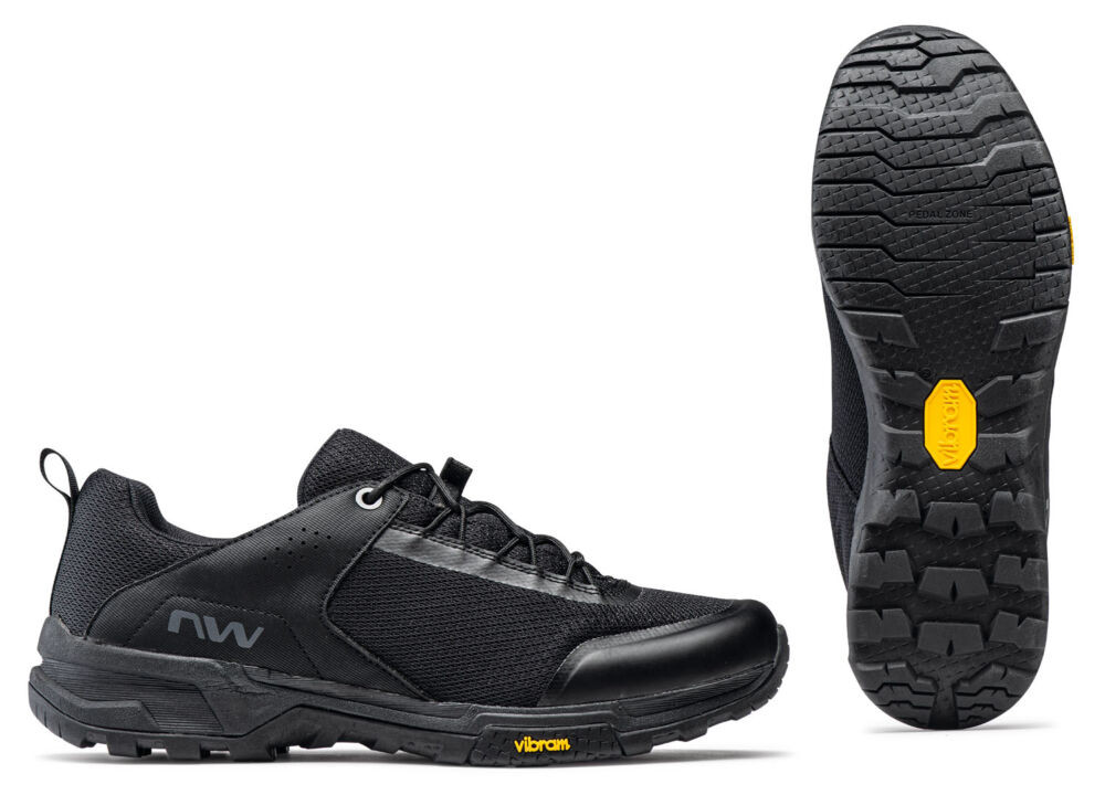 A lapos Vibram Volt talp magas szintű biztonságot nyújt, és könnyű haladást biztosít a Flat pedálokon. A szélesebb elülső terület és a sarokzónában található barázdák azt jelentik, hogy ez a talp jó pedálfogást biztosít, és bármilyen terepen működik. Az EVA középtalp garantálja a könnyűséget és a lengéscsillapítást. A túrázó stílusú rögzítéshez tartozik egy rugalmas pánt a nyelven, amely a cipőfűzőt biztonságosan a helyén tartja kerékpározás közben. A felsőrész légáteresztő hálóból készült, kopásgátló TPU betétekkel.