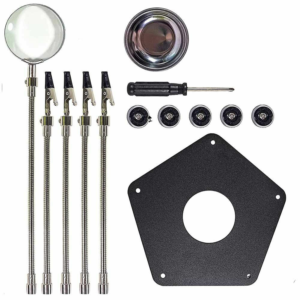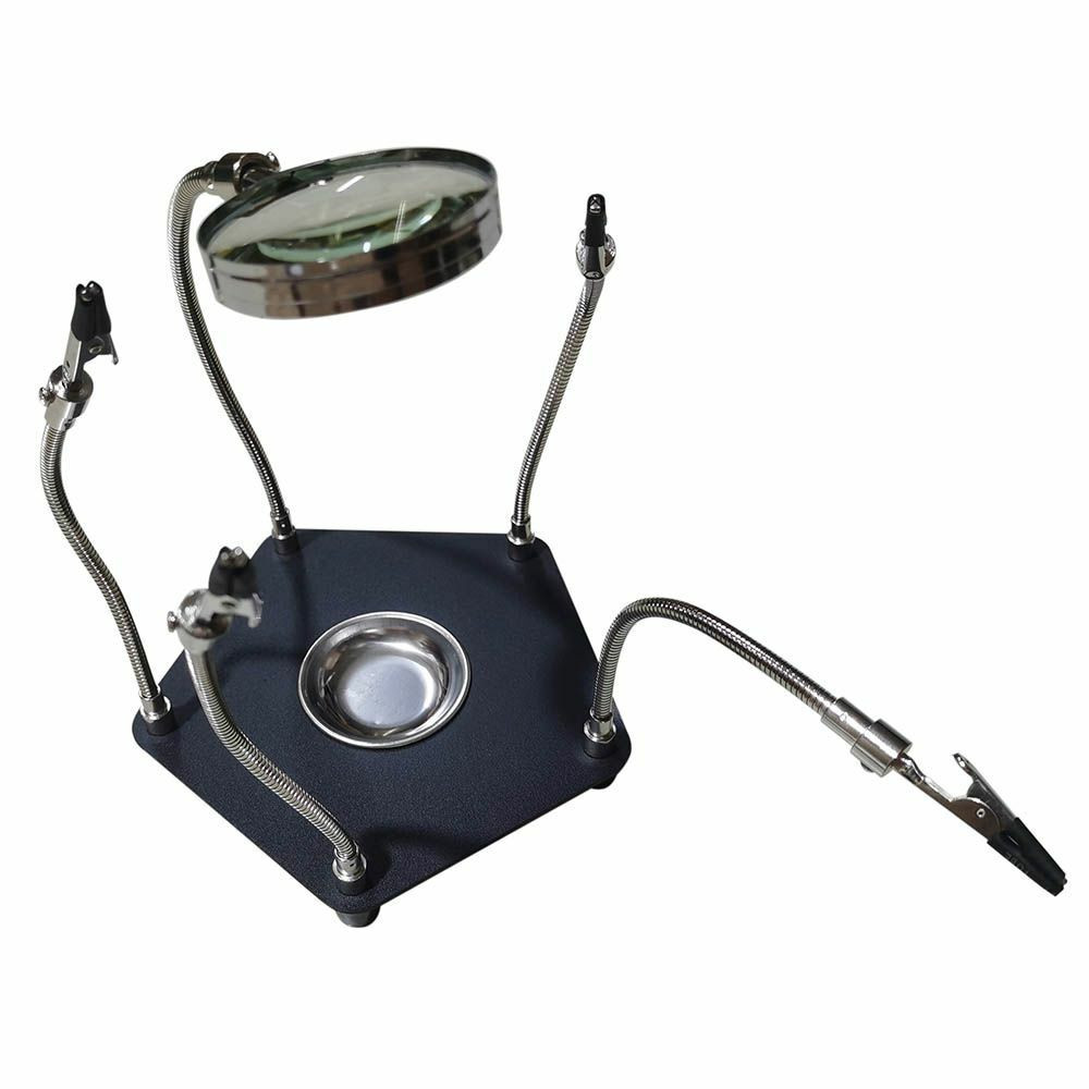 A csiptetős karokkal ellátott nyáklap tartó stabilan tartja az alaplapot forrasztás közben. 4 db 360°-ban forgatható aligátor kapcsokkal ellátott fogójával szükség szerint állíthatod az ideális forrasztási szöget. A rugós, flexibilis karok könnyedén hajlíthatók, így a lehető legtöbb helyet biztosítják kezednek munka közben.