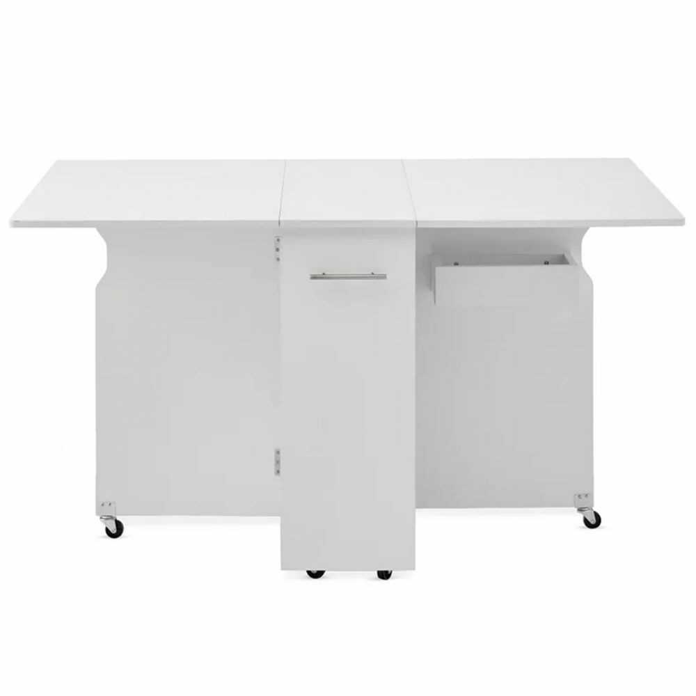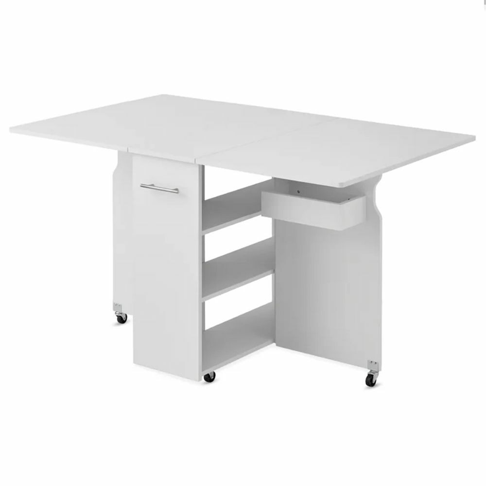 Összecsukható gurulós asztal polcokkal kinyitható asztallappal fehér HOP1001539