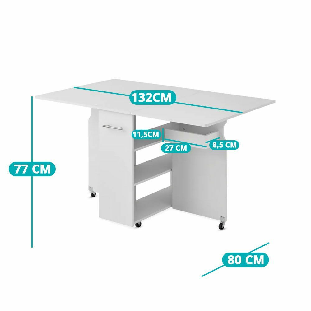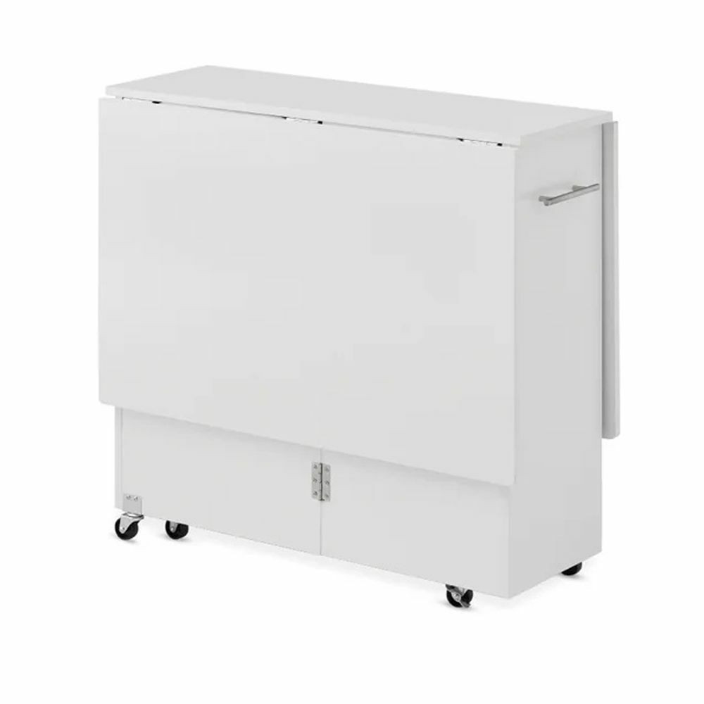 Kerekekkel ellátott kialakításának köszönhetően bármely helyiségbe könnyedén áthelyezheted. Lehajtható asztallapjával és belső, fiókos rekeszével tárolóvá alakíthatod így használhatod a dolgozószobában munkaasztalnak vagy elhelyezheted az étkezőben is. Kinyitható asztallapjával pillanatok alatt étkezőasztallá varázsolhatod ha szükséged van rá vagy vendégeid érkeznének. Legnagyobb előnye, hogy helytakarékos, ajtóval eltakart rekesszel rendelkezik így bármilyen stílusú otthonba megtalálhatod számára a megfelelő helyet.