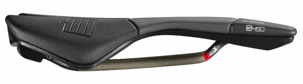 Ergonomikus csatorna: A W450 egy sokoldalú nyereg, amely számos felhasználásra és sportágra alkalmas. A középső területen az aktív habok és a központi horony stabilitást és kényelmet garantálnak azáltal, hogy a nyomást a nyereg teljes felületén elvezetik.