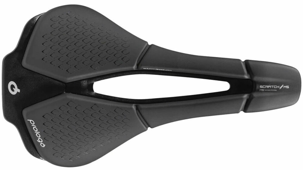 Fájdalommentes pedálozás a Prologo szabadalmaztatott kivágásával: PAS rendszer. Ezt a csatornát a test alakja köré tervezték, hogy elkerülje a nyomáscsúcsokat és a zsibbadást a perineális területen, lehetővé téve, hogy több órán át pedálozhasson kényelmetlenség vagy erővesztés nélkül.