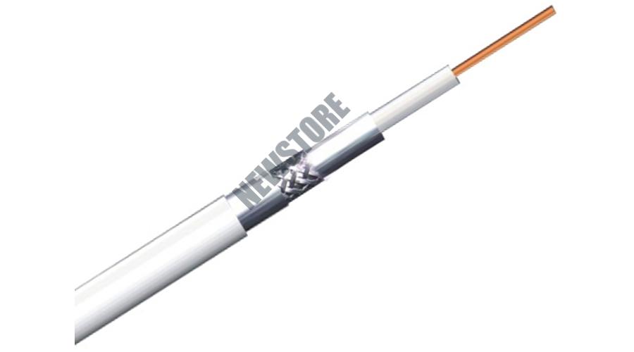 RG-6U, 75ohm, koax kábel, tömör ccs ér, háromszoros árnyékolás, fehér köpeny, 100m.
