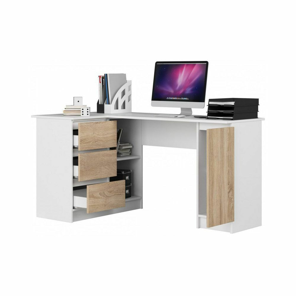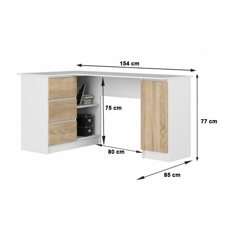 Ez a balos íróasztal nagyon jó választás lehet ha fontos számodra a maximális térkihasználás. 3 fiókkal, 2 külső, valamint 2 belső tároló résszel van ellátva, így kényelmesen tarthatsz benne mindent amire szükséged van. Irodába, otthoni dolgozósarokba, vagy gyerekszobába ajánljuk. L alakú kialakításának köszönhetően kényelmesen elfér rajta egy laptop vagy monitor, mellette pedig könyveket, füzeteket, mappát vagy iratrendezőt is tárolhatsz.
