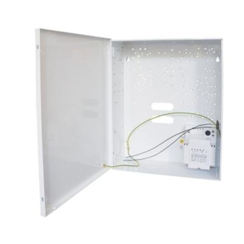 Fém riasztódoboz SATEL központokhoz, tápegységgel, fehér, 320x395x120 mm.