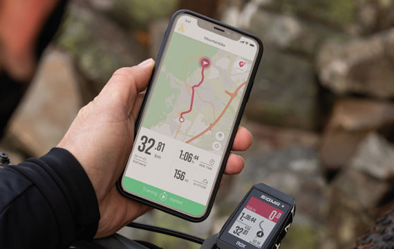 A "Search & Go" navigáció lehetővé teszi egy adott hely megtalálását és az oda navigálást. Az okostelefonján lévő SIGMA RIDE alkalmazásba beírhat egy címet, vagy rákattinthat a térképen egy pontra. Az útvonalpreferenciák (kerékpárutak, földutak, aszfaltozott utak és futó/túraútvonalak) egyedileg beállíthatók. Az így létrehozott útvonal közvetlenül elindítható a ROX 11.1 EVO készüléken, vagy elmenthető a RIDE alkalmazásban későbbi használatra.