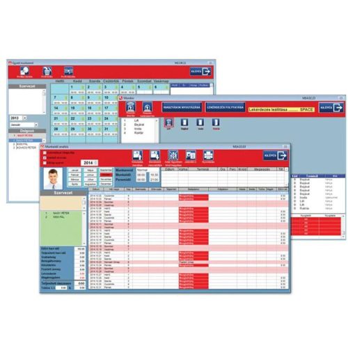 - Beállítható munkaidő, peremidő, törzsidő és levonható ebédidő.