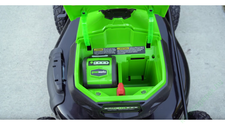 40 V-os lítium-ion akkumulátorral működik, amely erős és hosszantartó működést biztosít, így nagyobb gyepterületeket is képes egy feltöltéssel levágni.