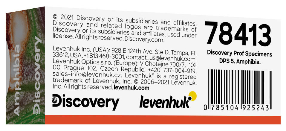 A Levenhuk Discovery Prof DPS 5 mikropreparátum mintakészlet. A „Kétéltűek” készlet öt darab mintát tartalmaz, amelyeket a halak és kétéltűek professzionális tanulmányozására készítettünk. A készlet tárgylemezein különféle előkészített szövetek, szervek és egész szervezetek találhatók. Kiváló tanítási anyagot képez az állattani és állatorvosi hallgatók, a jövő orvosai és biológusai számára. Remek választás akkor is, ha valakinek a mikrobiológia a hobbija.