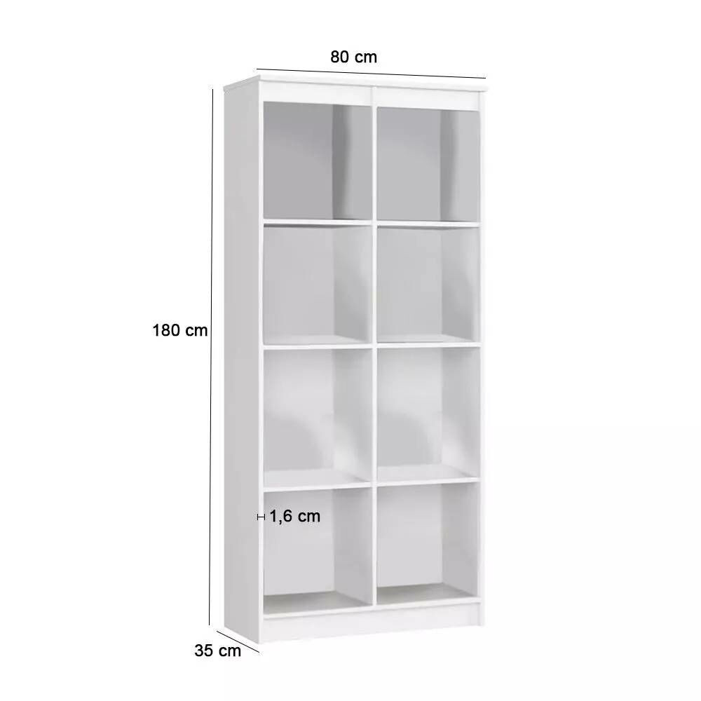 Összesen 8 polcának köszönhetően ez a fehér tárolópolc elengedhetetlen eleme egy irodának, vagy dolgozószobának, de akár otthonra a nappaliba, vagy a gyerekszobába is tökéletes választás. Keskeny kivitelezése miatt nem vesz el nagy helyet a térből, mégis bőven lehet ár pakolni. Minimalista stílusát könnyen kombinlhatod már bútorelemekkel is.