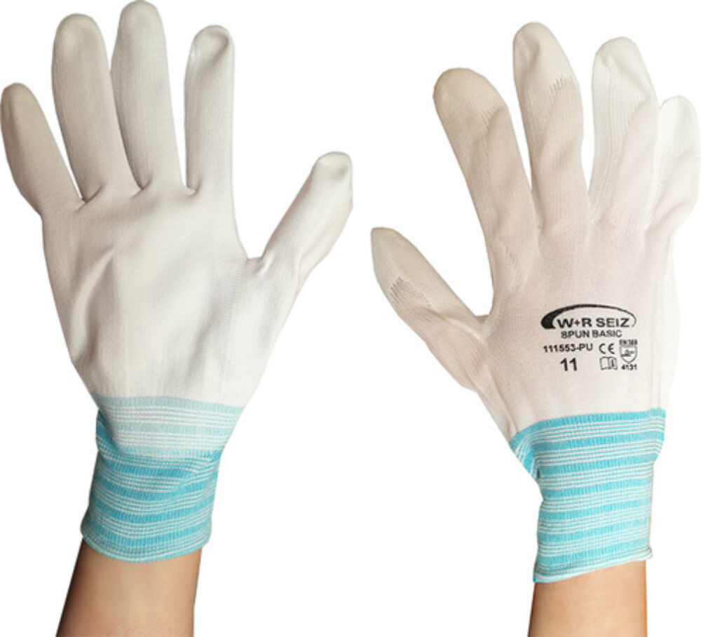 - Poliamidból, fehér PU bevonattal a tenyérnél.