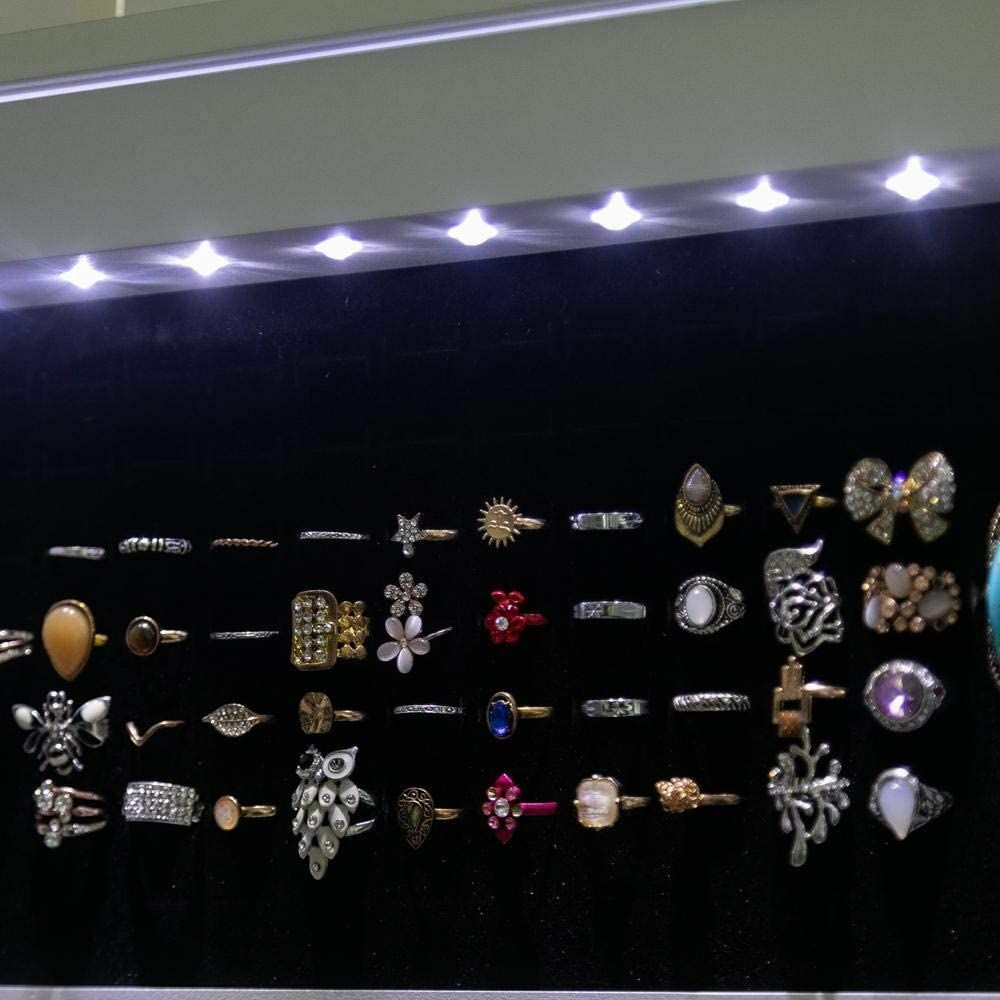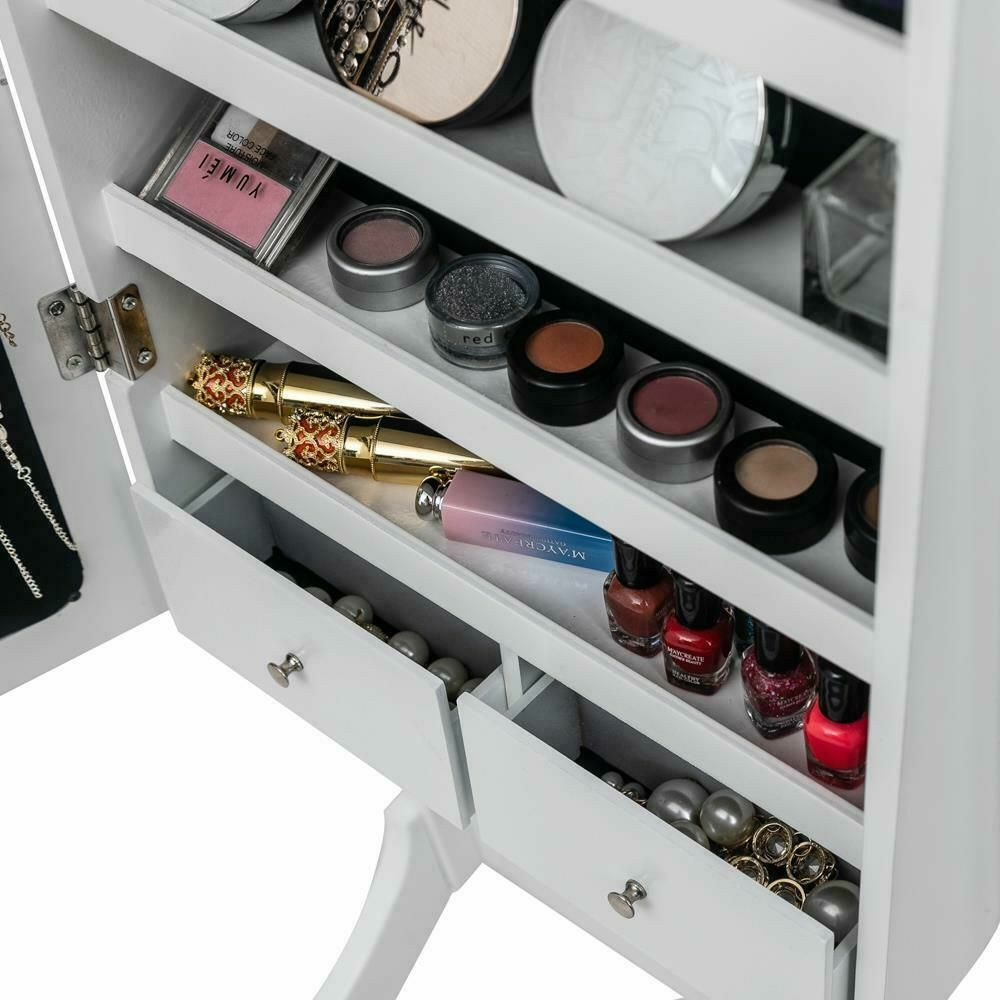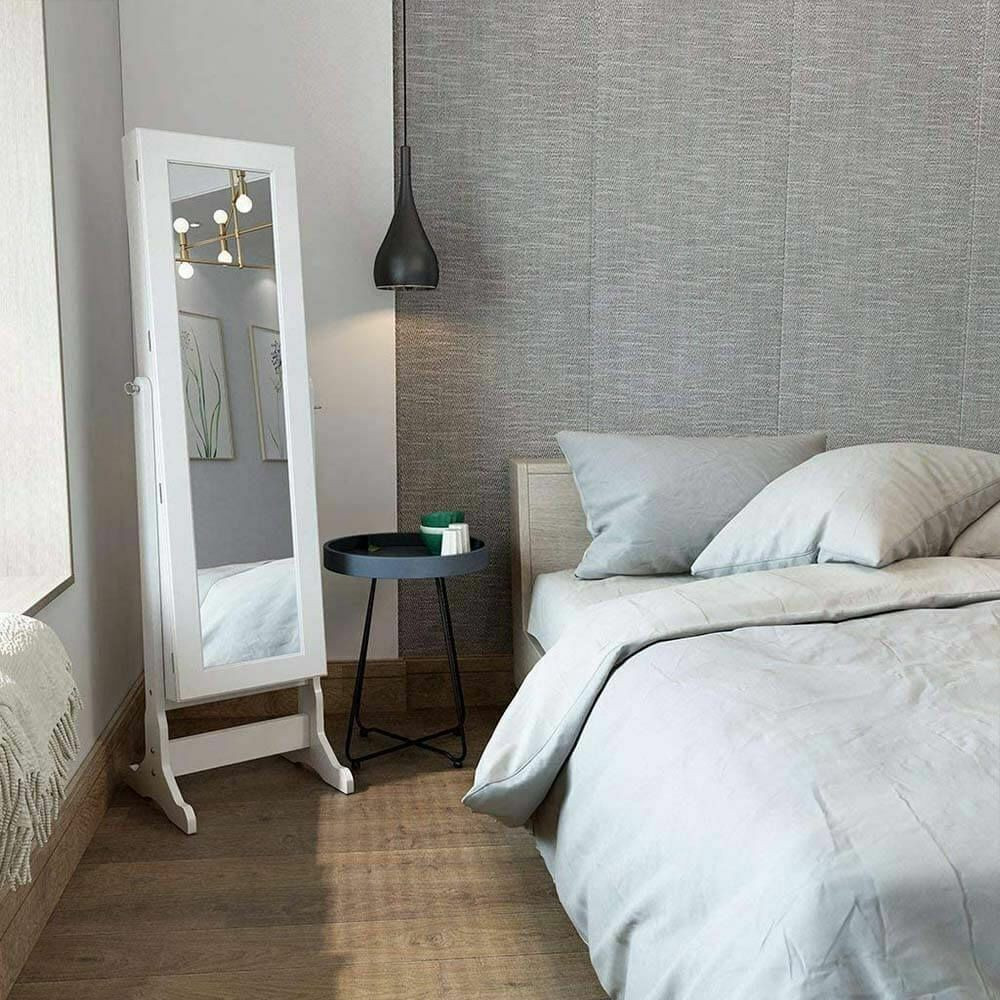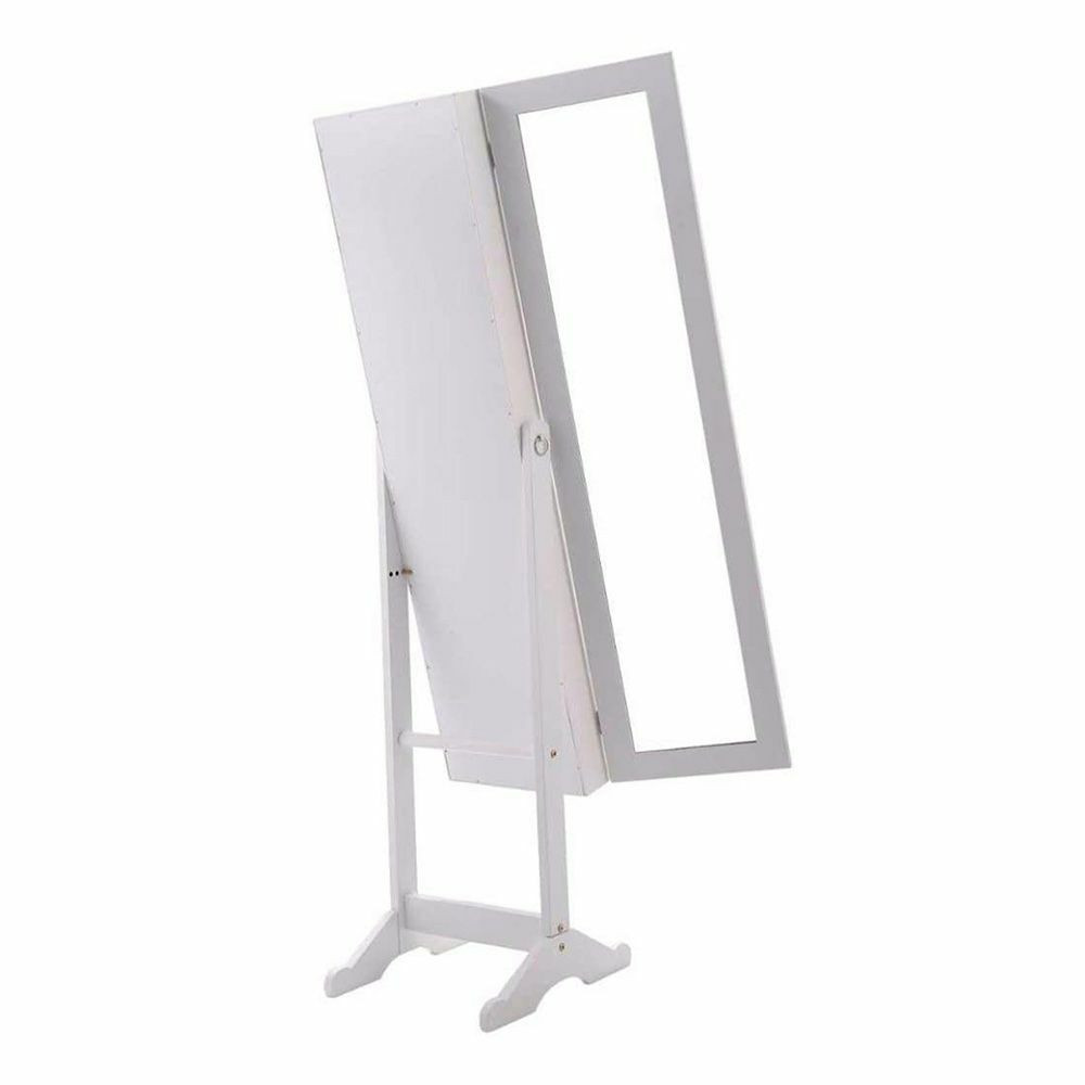 A szekrény tükrös ajtóval, puha plüss belső borítással, illetve horgokkal, akasztókkal és polcokkal van felszerelve. Az ajtó kinyitása után LED fény világítja meg a szekrény belsejét, így a tartalma jobban látható. A tükör mögött rengeteg ékszer, bizsu és más apróságok tárolására van lehetőség. A nyakláncok számára 3x9 db akasztó áll rendelkezésre, emellett gyűrűk, karkötők és fülbevalók tárolására is külön rész került kialakításra. A szekrény ajtaja egy kis kulccsal zárható, így illetéktelenek nem nyithatják ki. Letisztult formavilágának köszönhetően a legtöbb helyiségbe illik, tökéletes kiegészítője lehet egy hálószobának, fürdőszobának vagy nappalinak. A tükrös szekrény fekete és fehér színben érhető el.