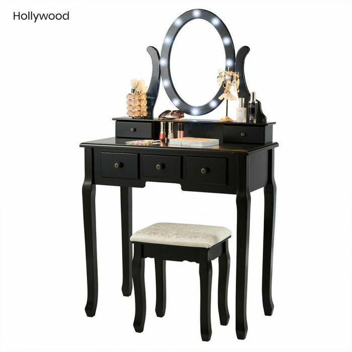 Fából készült, tükrös fésülködő asztal és szék hálószobába, öltözőbe, gardrób szobába. Elegáns fehér vagy fekete színe, világító keretes tükre, és kialakítása miatt igazi dísze lesz a lakásnak. A fésülködő asztalba épített szekrény kisebb és nagyobb fiókokkal rendelkezik, melyekbe kényelmesen pakolhatod bele ékszereidet, sminkjeidet, egyéb kiegészítőidet.