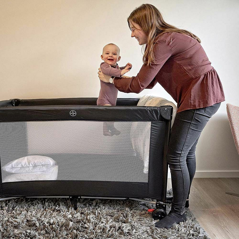 Fixálható kerekeivel könnyedén átviheted egyig helyiségből a másikba és stabilan rögzítheted a megfelelő szobában. Rugalmas, stabil, hálós oldalkialakítása révén mindig szemmel tarthatod gyermeked és biztonságos helyet biztosít számára amíg teendőidet végzed. Emelhető fekvő felületének köszönhetően kényelmes használatot biztosít. Anyaga könnyen tisztítható.