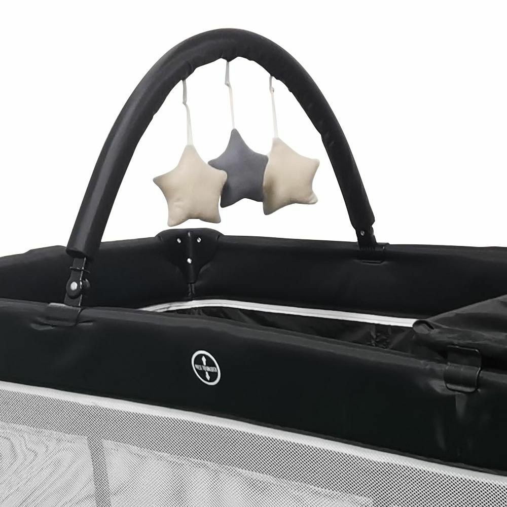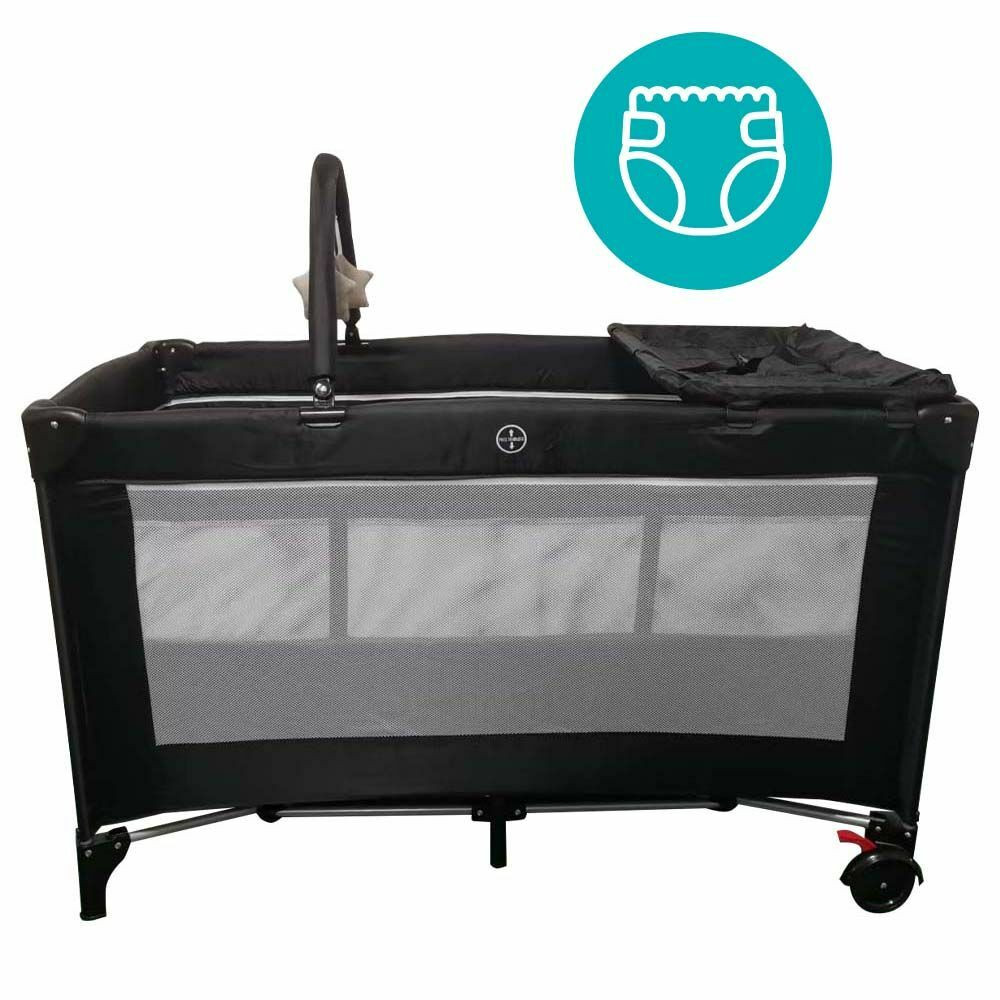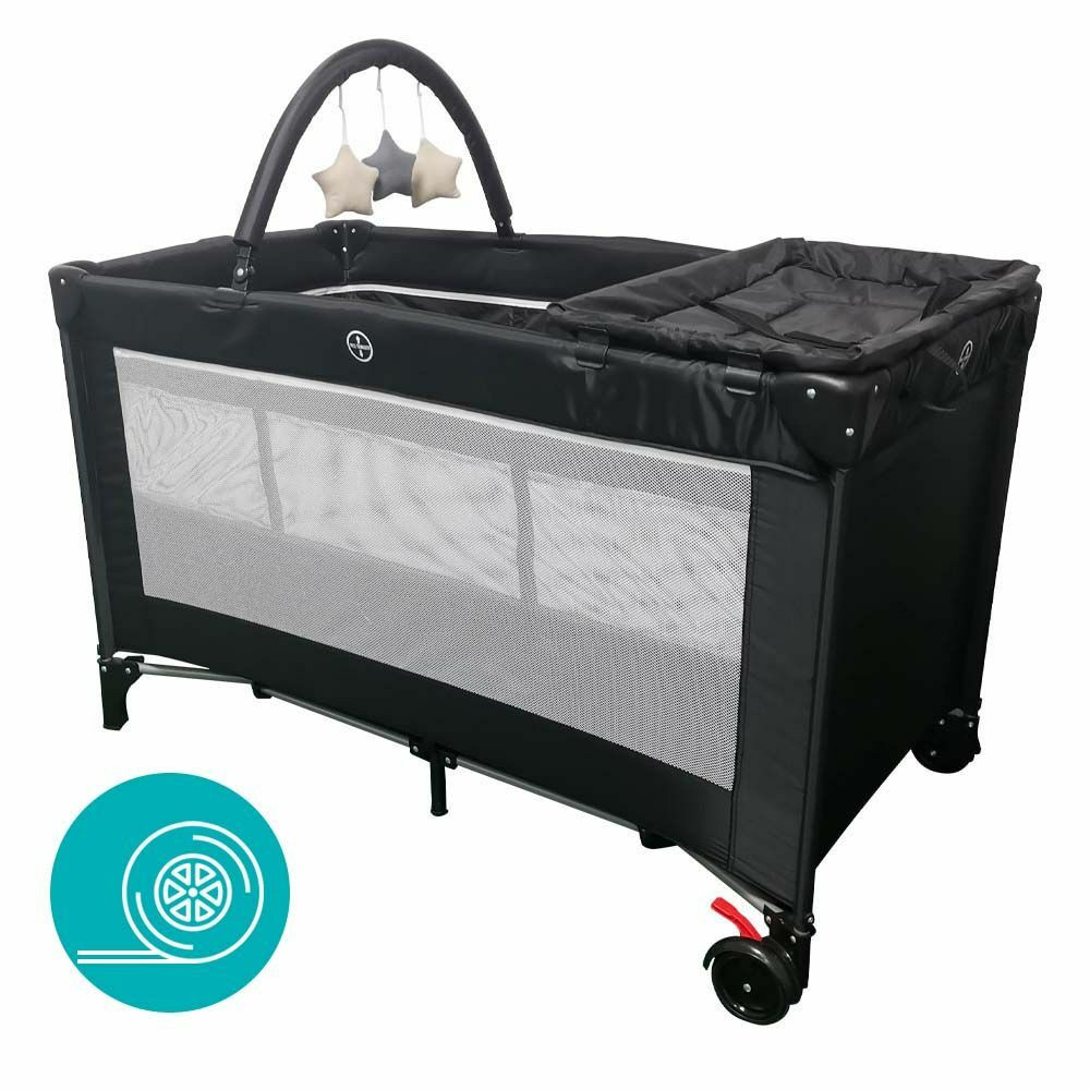 Az ágyat könnyedén összecsukhatod és magaddal viheted nyaralásra és kirándulásra, de jó szolgálatot tesz rokonlátogatások alkalmával is. Az ágyon helyet kapott egy leszerelhető játékhíd is, melyen színes játékok foglalják le gyermeked figyelmét pihenés közben és elalvás előtt. A felszerelhető pelenkázó lappal nem kell külön helyet keresned a pelus kicserléséhez vagy a fürdés utáni öltöztetéshez. 0-3 éves kor között használható, így a teljes pelenkázós korszakban remek hasznát veszitek majd.