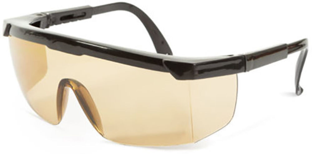 Védőszemüveg szemüvegeseknek, állítható szárhosszúság, műanyag, amber.