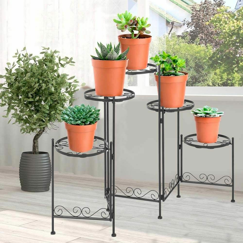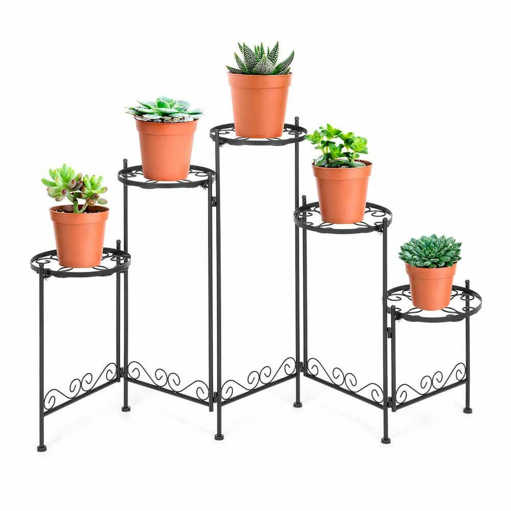 A teraszon, kertben és beltéren is használható virágtartó állvány, ami a helyiség dísze lehet. Az állvány kihajtható, több módon variálható, teljesen kihajtott állapotban a hosszúsága 131 cm. 5 db kaspót vagy cserepet helyezhetsz rá, amit a csomag nem tartalmaz. A virágtartó nem csak tökéletes díszítőelem, hanem praktikus is, hiszen a növények megfelelő mennyiségű fényt kapnak. Az állvány fémből készült, aminek köszönhetően strapabíró.