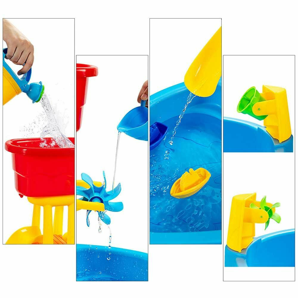 Az asztal felülete 2 részre van osztva, egyik oldala kifejezetten a vizes játékokra szolgál, a másik oldala pedig homokozásra, onnantól pedig csak a kicsik kreativitására van bízva, hogy mit és hogyan alkotnak. Számos kiegészítőjével formázhatnak, lapátolhatnak, locsolhatnak vagy kis csónakot úsztathatnak a gyerekek.