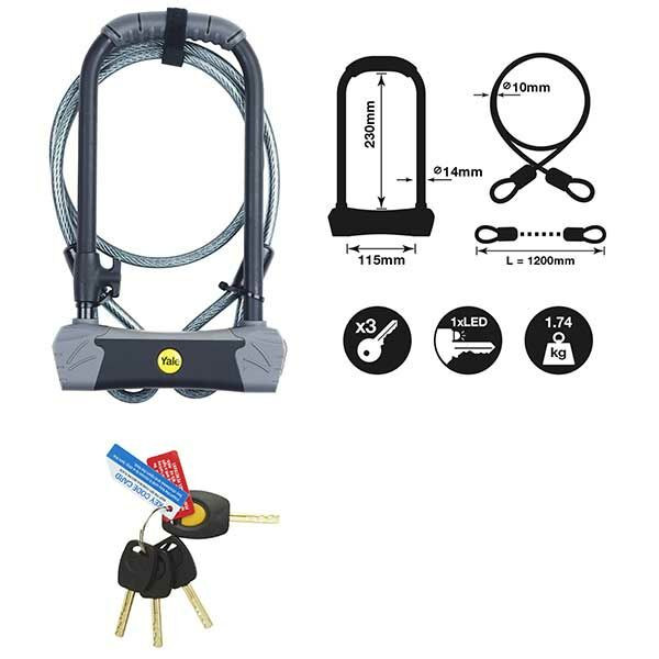 Yale prémium kerékpár U lakat és sodrony Szürke YUL3C/14/230/1 YUL3C142301