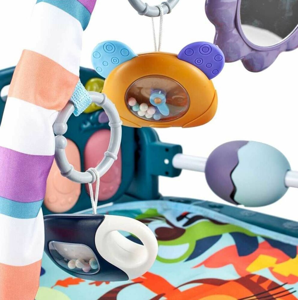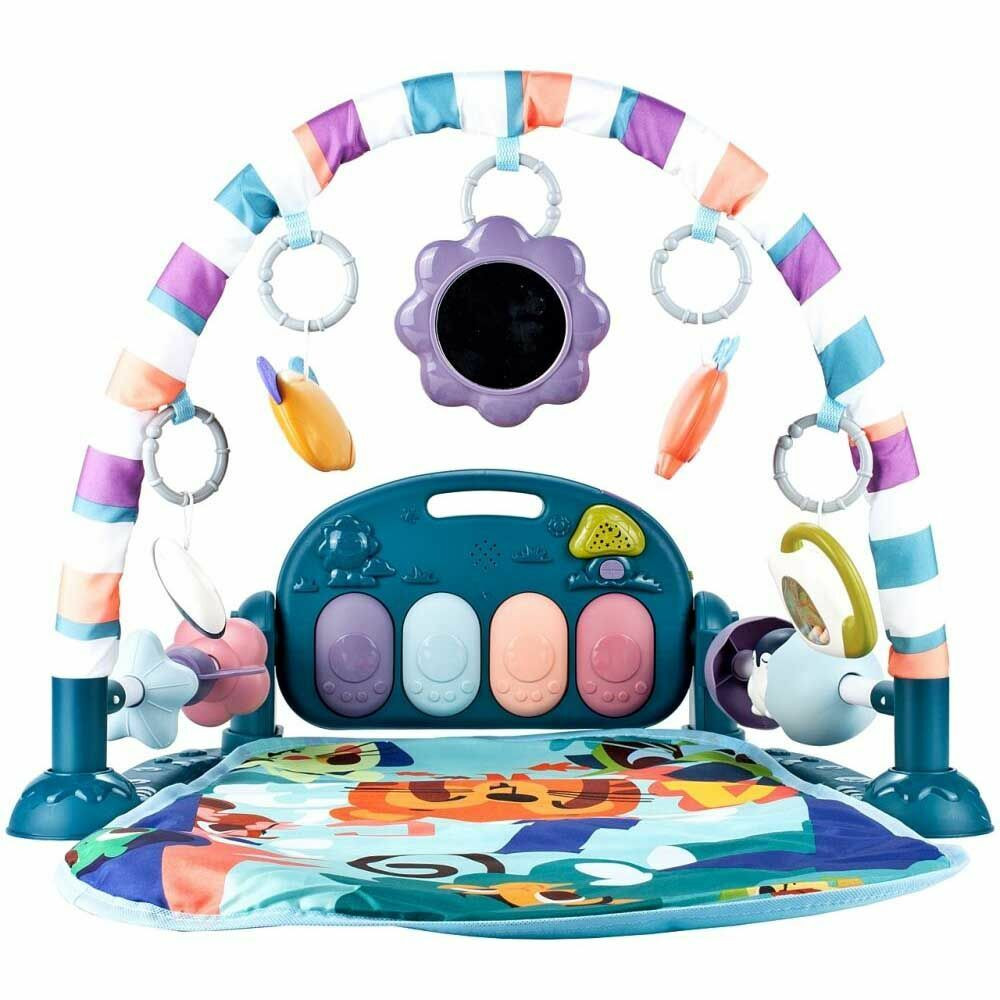 A zenélő játszószönyeg már a legkisebbek figyelmét is felkelti. Élénk színeivel és különleges hanghatásaival lekötheti gyermeked már egészen újszülött korától. A játékhídon található színes, zörgő játékok késszégfejlesztő hatással lehetnek a kicsikre. Talpacskáikkal megérinthetik a zenélő gombokat, így kedves allamokat is hallgathatnak közben. Stabil talpazatának köszönhetően a kicsik játék és forgolódás közben sem tudják maguk alá gyűrni a szőnyeget.
